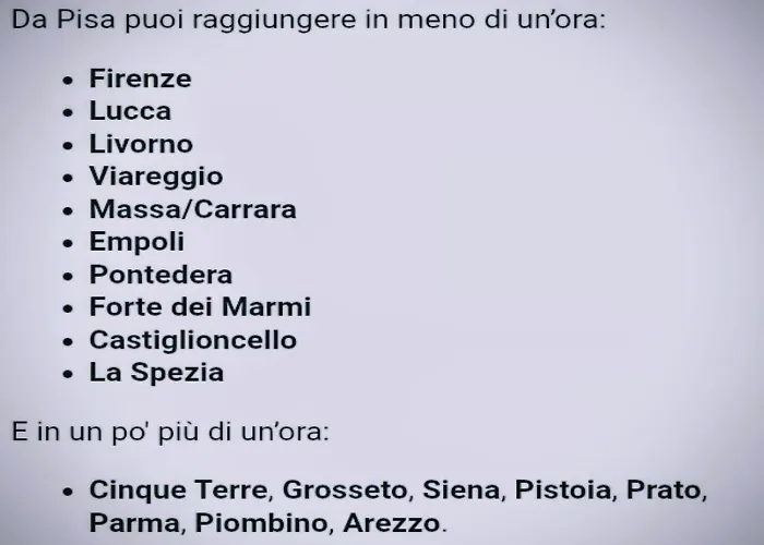 Z vily to trvá 25 minut pěšky do Šikmá Věž V Pise a 10 minut jízdy autem do Baptisterium v Pise. Ubytování je v blízkosti Porta San Martino. Hostům budou chutnat jídla Toscaanse keuken Lo Schiaccianoci, která je asi 450 metrů daleko. Nejbližším letištěm je letiště Pisa International - Galileo Galilei nacházející se v 5 km od Villa Leonardo House Pisa.